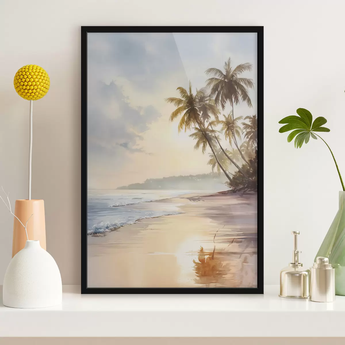 Poster Sonnenuntergang am Strand einer Insel im Aquarellstil f47135