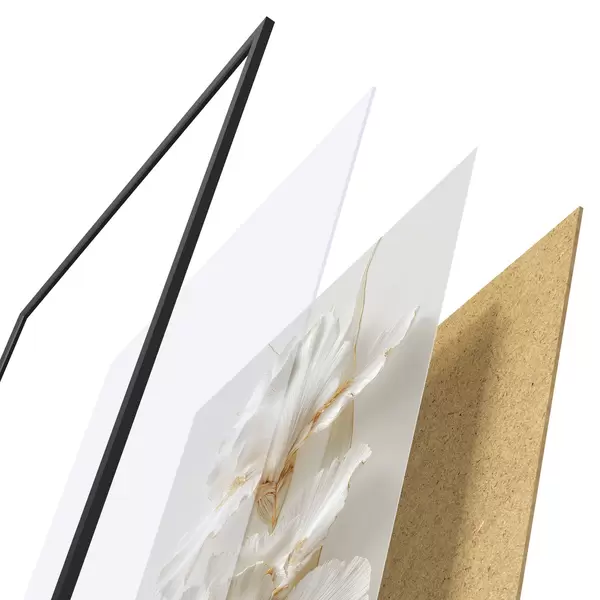 Das Poster besteht aus einem Rahmen, Plexiglas, einem gedruckten Bild und einer Rückwand aus Spanplatten. Dank der Halterungen auf der Rückseite kann das Poster sofort an die Wand gehängt werden.