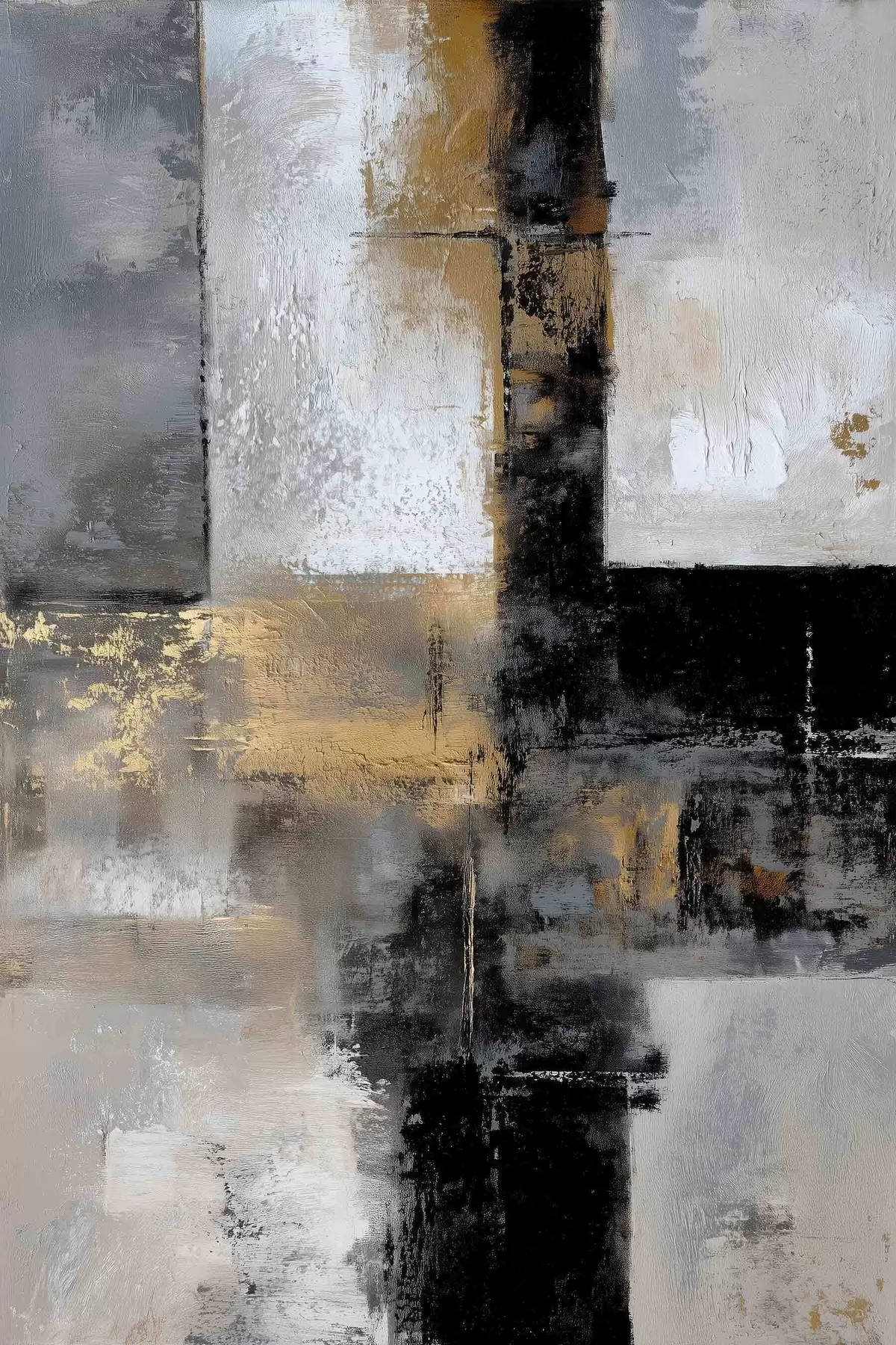 Poster zeitgenössische strukturelle Abstraktion in Schwarz-, Grau- und Weißtönen Nr f47140