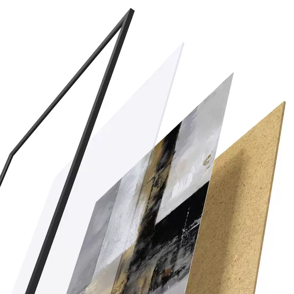 Das Poster besteht aus einem Rahmen, Plexiglas, einem gedruckten Bild und einer Rückwand aus Spanplatten. Dank der Halterungen auf der Rückseite kann das Poster sofort an die Wand gehängt werden.