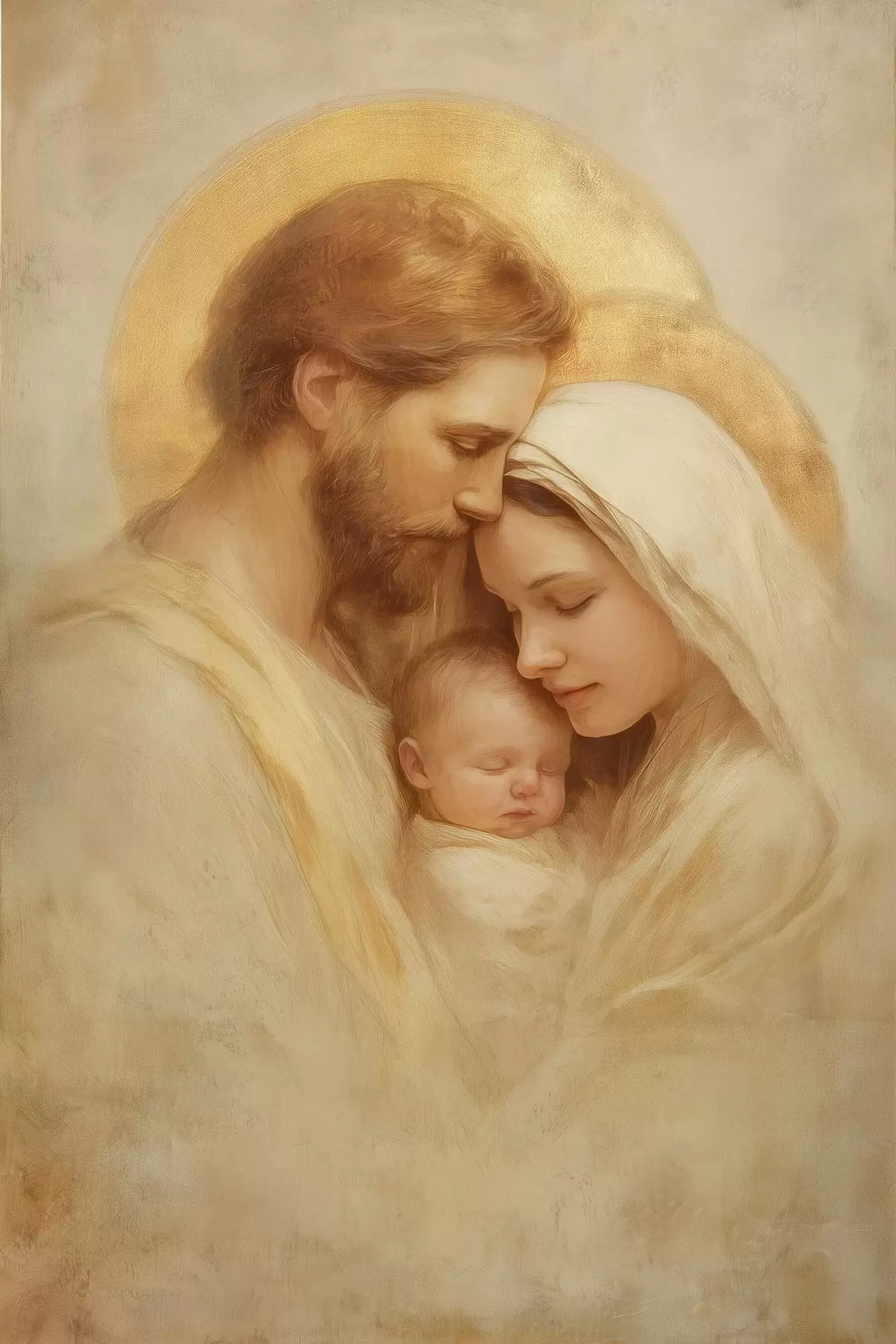Poster Die Jungfrau Maria und Josef mit dem Jesuskind im Stil eines alten Freskos Nr f47141