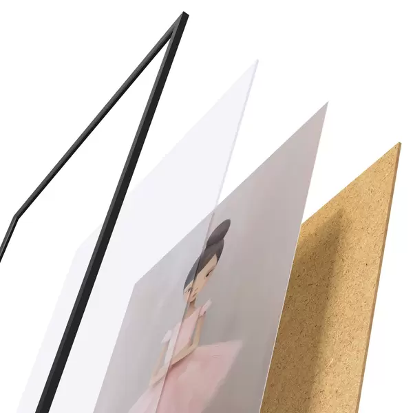 Das Poster besteht aus einem Rahmen, Plexiglas, einem gedruckten Bild und einer Rückwand aus Spanplatten. Dank der Halterungen auf der Rückseite kann das Poster sofort an die Wand gehängt werden.