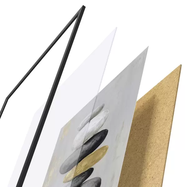 Das Poster besteht aus einem Rahmen, Plexiglas, einem gedruckten Bild und einer Rückwand aus Spanplatten. Dank der Halterungen auf der Rückseite kann das Poster sofort an die Wand gehängt werden.