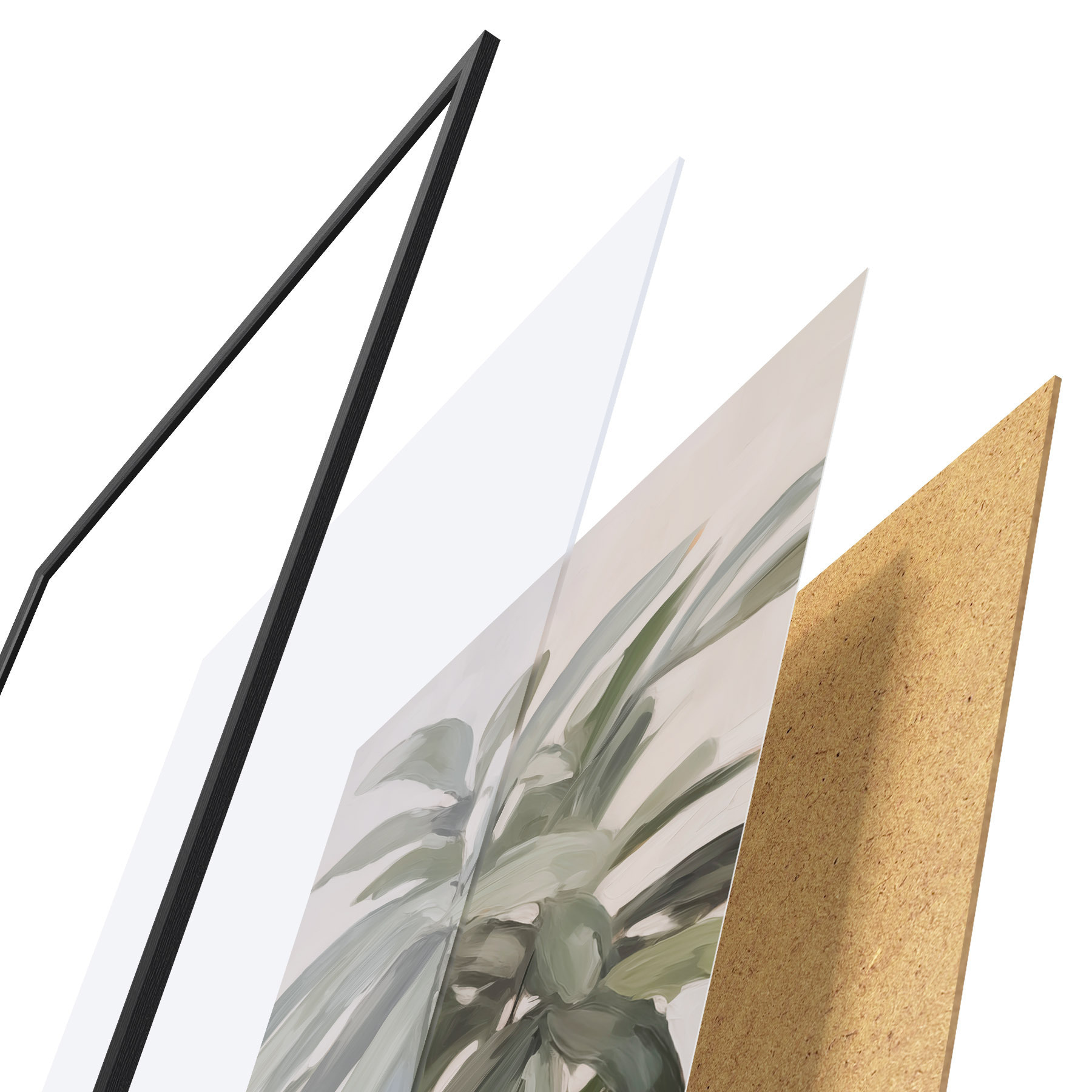 Das Poster besteht aus einem Rahmen, Plexiglas, einem gedruckten Bild und einer Rückwand aus Spanplatten. Dank der Halterungen auf der Rückseite kann das Poster sofort an die Wand gehängt werden.