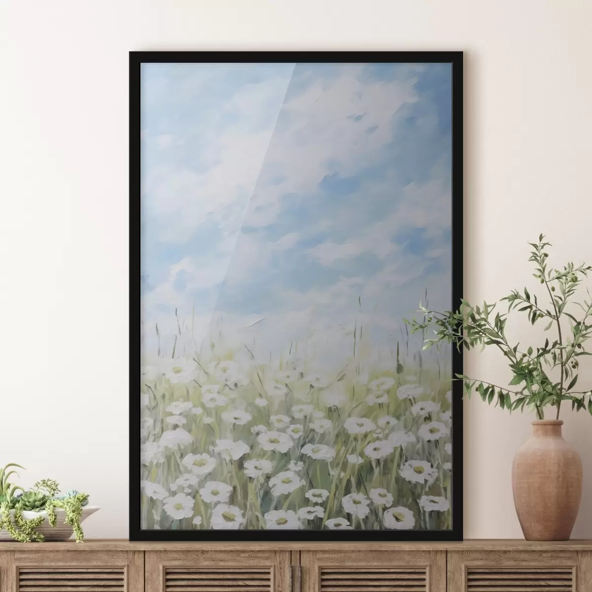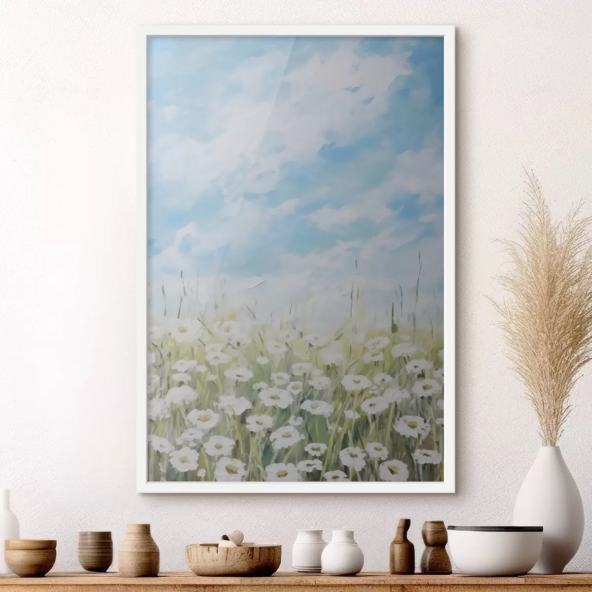 Poster Feld mit Gänseblümchen, Imitationsgemälde f47246