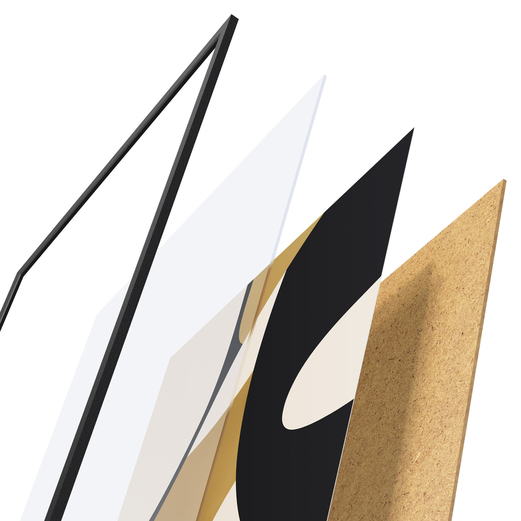 Das Poster besteht aus einem Rahmen, Plexiglas, einem gedruckten Bild und einer Rückwand aus Spanplatten. Dank der Halterungen auf der Rückseite kann das Poster sofort an die Wand gehängt werden.