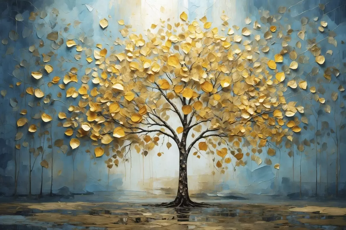 Poster Baum mit gelben Blättern vor blauem Hintergrund Nr f47256