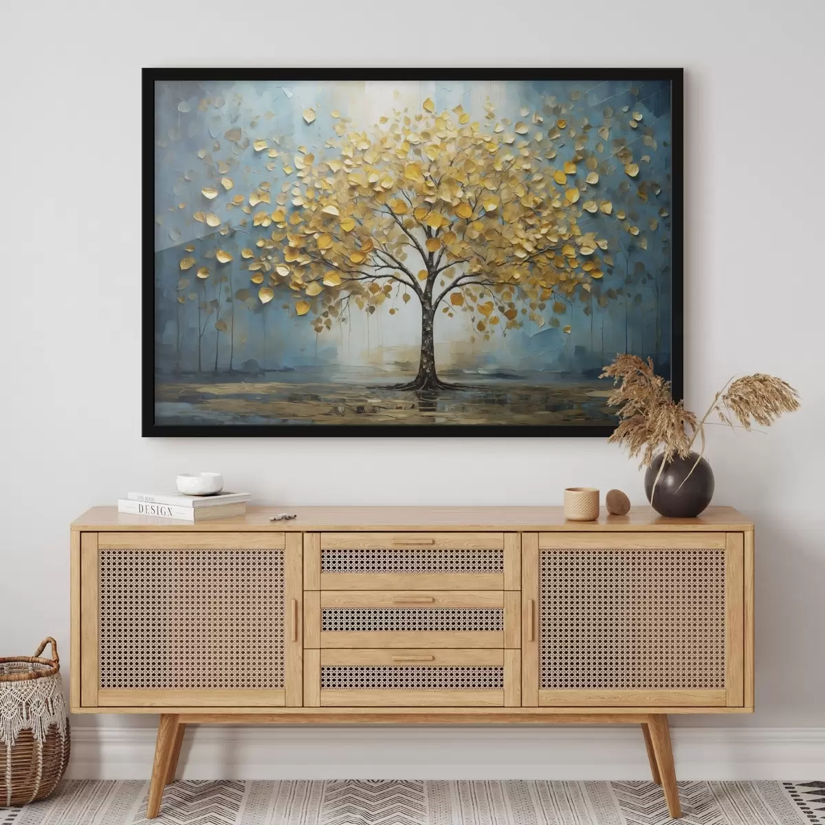 Poster Baum mit gelben Blättern vor blauem Hintergrund f47256