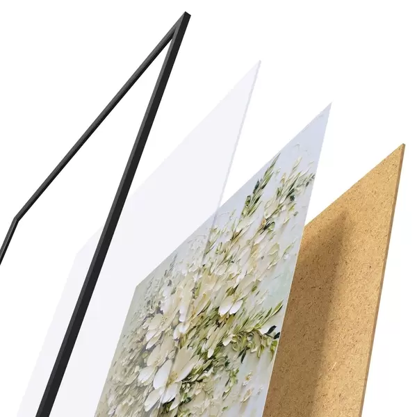 Das Poster besteht aus einem Rahmen, Plexiglas, einem gedruckten Bild und einer Rückwand aus Spanplatten. Dank der Halterungen auf der Rückseite kann das Poster sofort an die Wand gehängt werden.