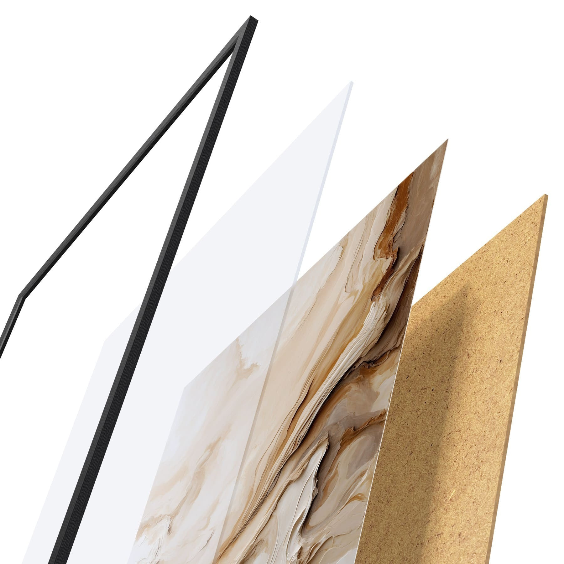 Das Poster besteht aus einem Rahmen, Plexiglas, einem gedruckten Bild und einer Rückwand aus Spanplatten. Dank der Halterungen auf der Rückseite kann das Poster sofort an die Wand gehängt werden.