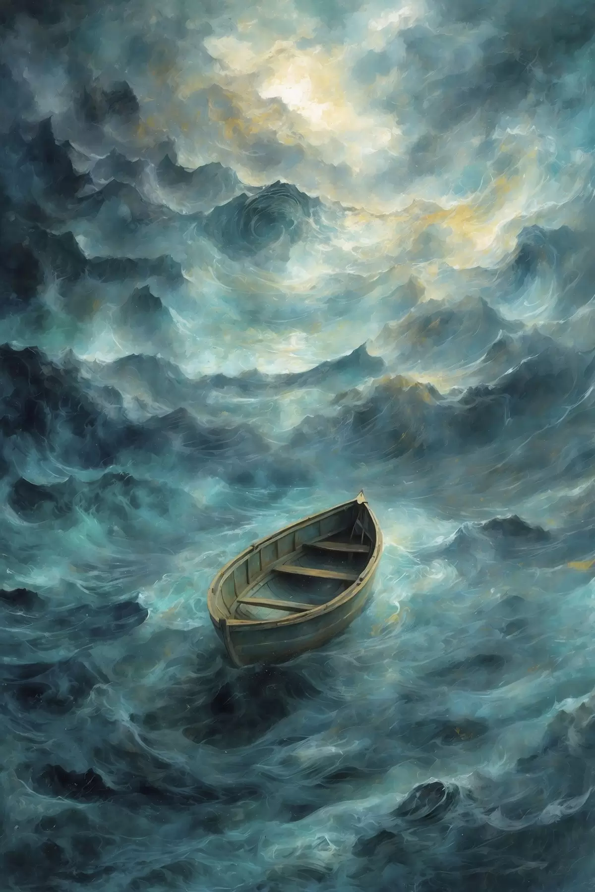 Poster Boot auf Wellen in einem stürmischen Meer Nr f47272
