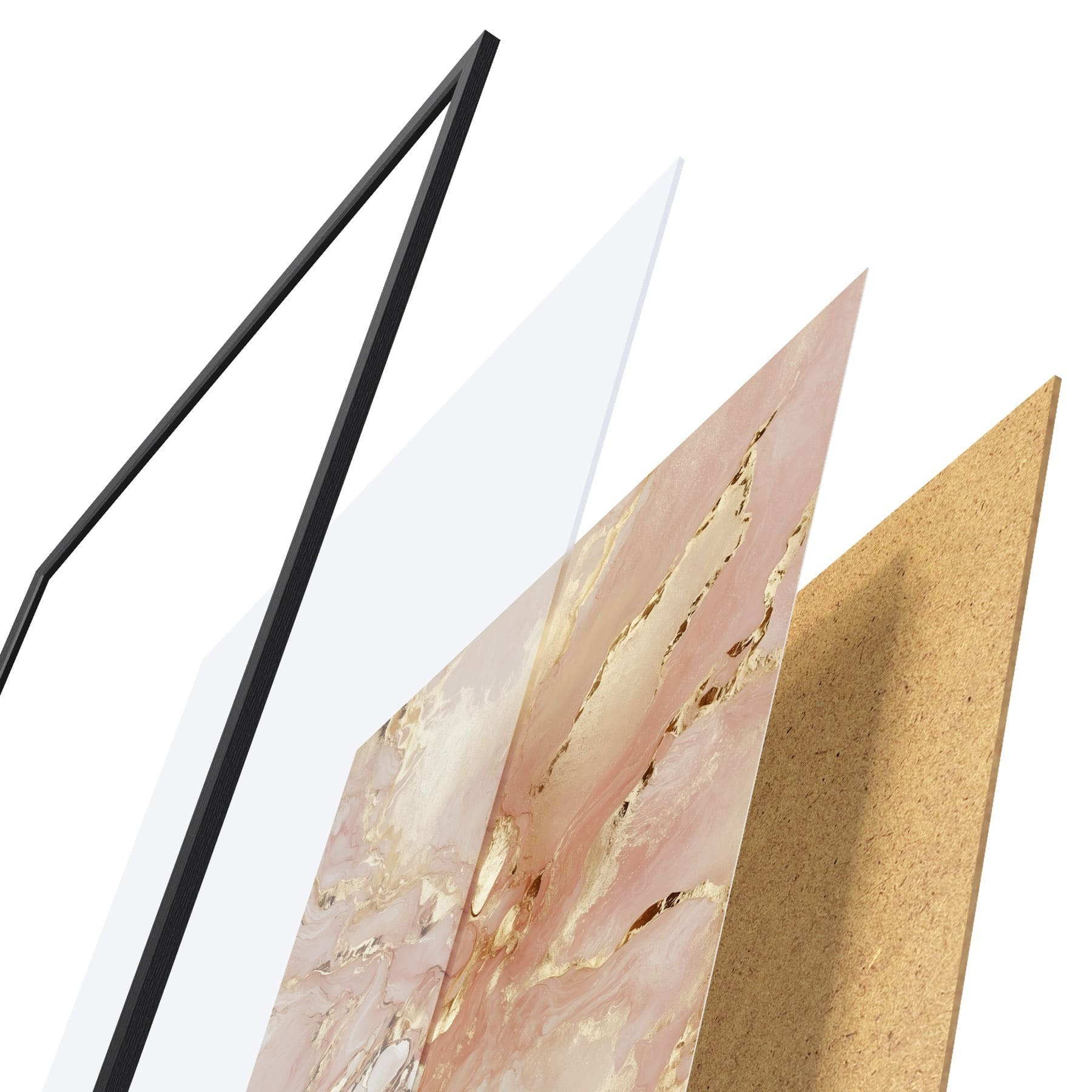 Das Poster besteht aus einem Rahmen, Plexiglas, einem gedruckten Bild und einer Rückwand aus Spanplatten. Dank der Halterungen auf der Rückseite kann das Poster sofort an die Wand gehängt werden.