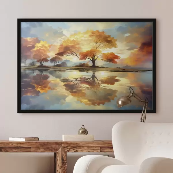 Poster Lebendige Bäume spiegeln sich im Wasser Nr f47287