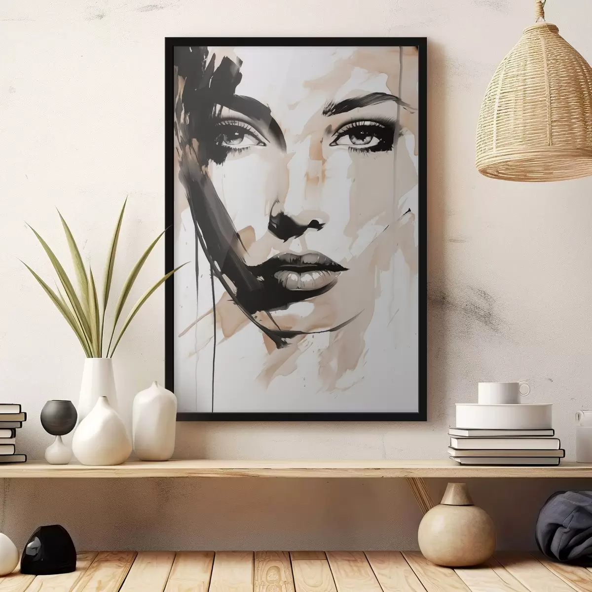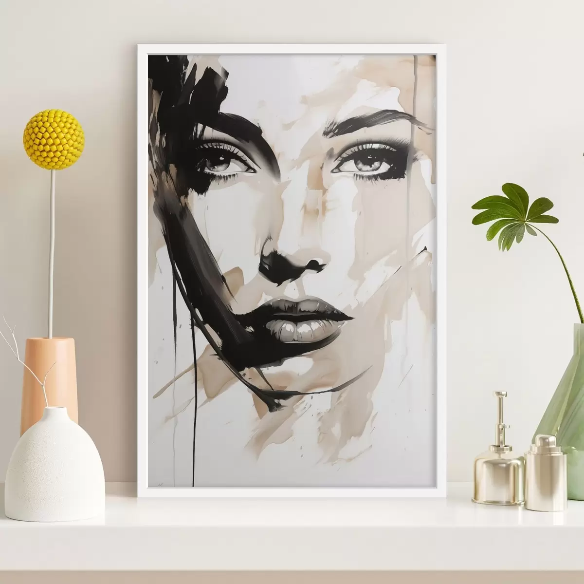 Poster Abstraktes Frauenporträt in hellen Farbtönen Nr f47290