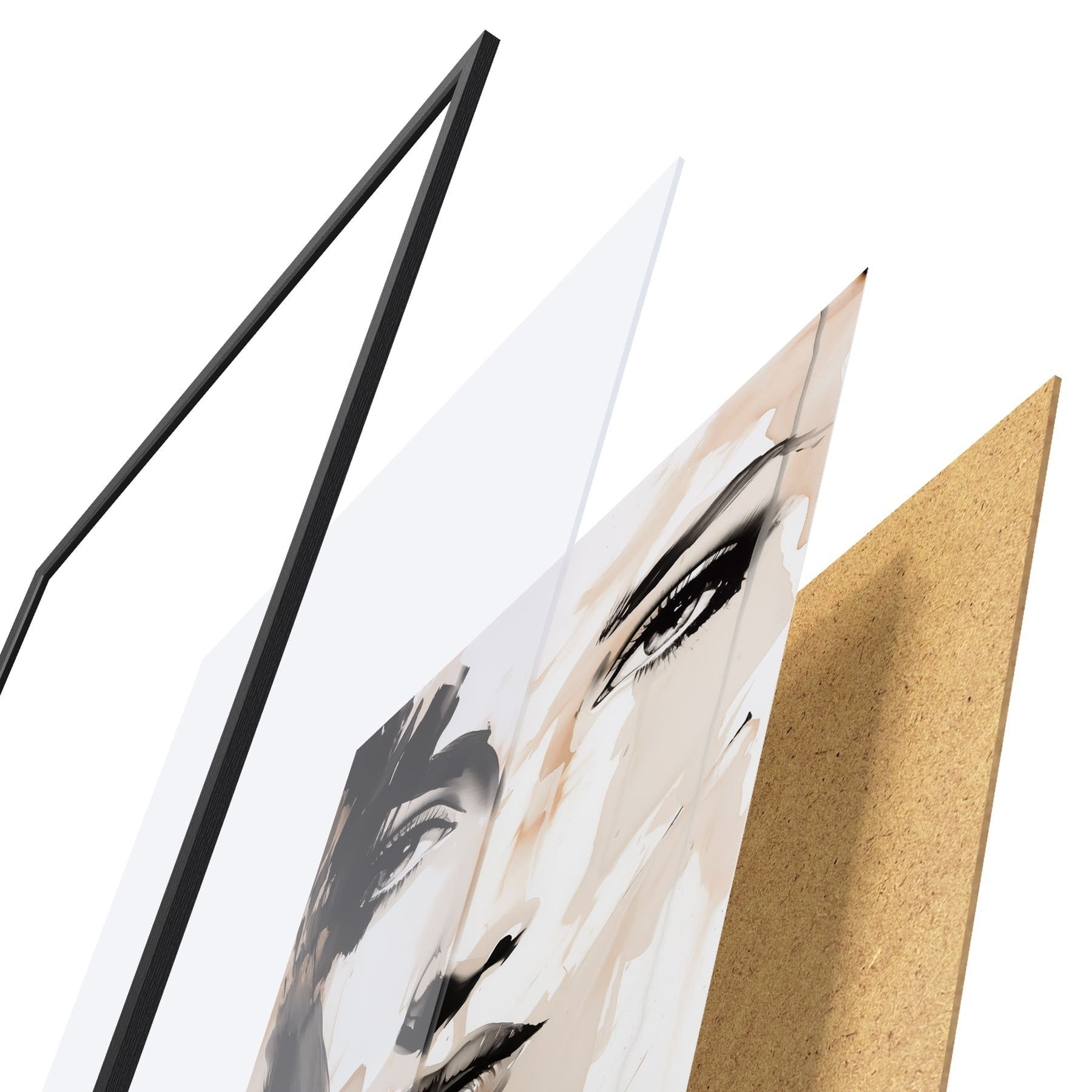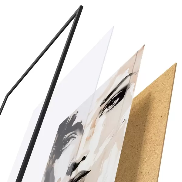 Das Poster besteht aus einem Rahmen, Plexiglas, einem gedruckten Bild und einer Rückwand aus Spanplatten. Dank der Halterungen auf der Rückseite kann das Poster sofort an die Wand gehängt werden.
