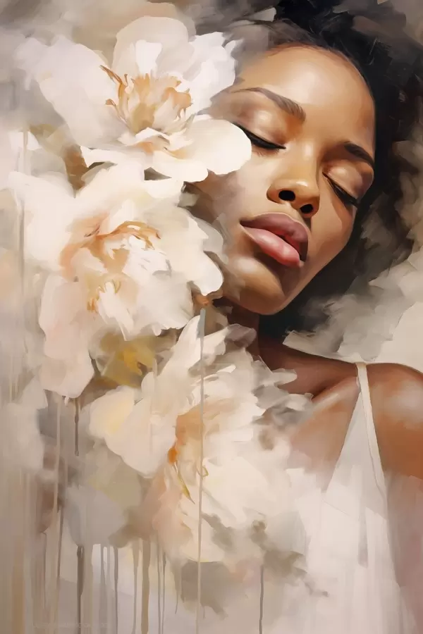 Poster Frauenporträt neben großen Blumen Nr f47307