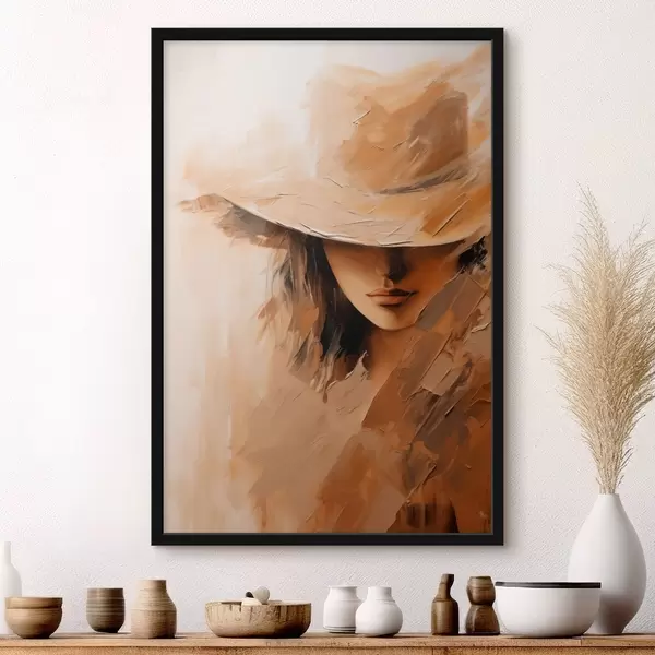 Poster Frau mit Hut in strukturierten, warmen Pinselstrichen Nr f47315