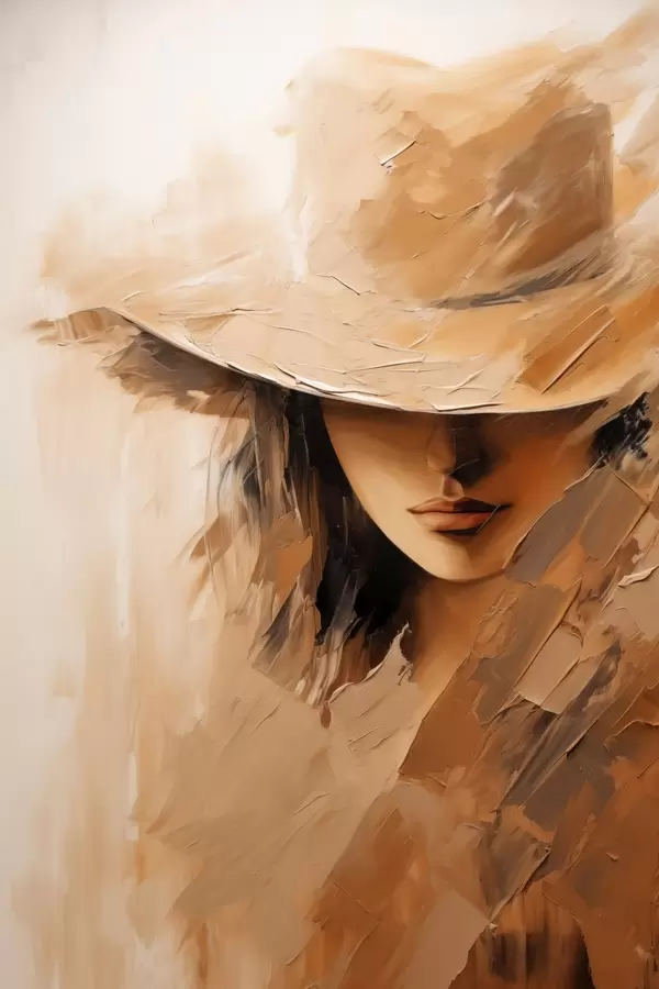 Poster Frau mit Hut in strukturierten, warmen Pinselstrichen Nr f47315