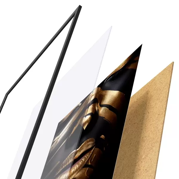 Das Poster besteht aus einem Rahmen, Plexiglas, einem gedruckten Bild und einer Rückwand aus Spanplatten. Dank der Halterungen auf der Rückseite kann das Poster sofort an die Wand gehängt werden.