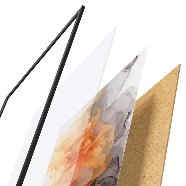 Das Poster besteht aus einem Rahmen, Plexiglas, einem gedruckten Bild und einer Rückwand aus Spanplatten. Dank der Halterungen auf der Rückseite kann das Poster sofort an die Wand gehängt werden.