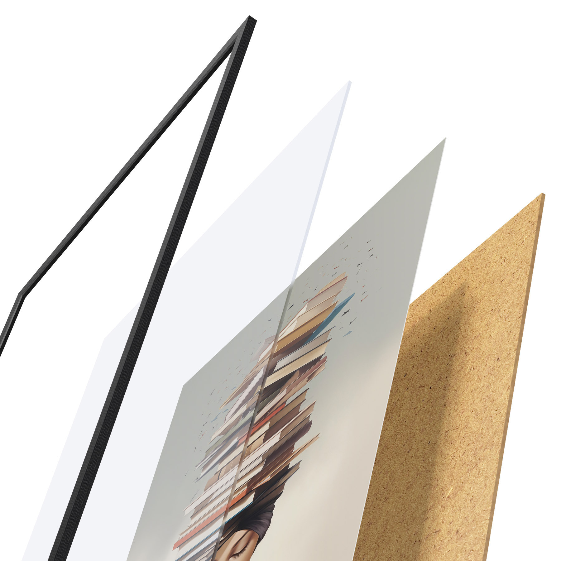 Das Poster besteht aus einem Rahmen, Plexiglas, einem gedruckten Bild und einer Rückwand aus Spanplatten. Dank der Halterungen auf der Rückseite kann das Poster sofort an die Wand gehängt werden.