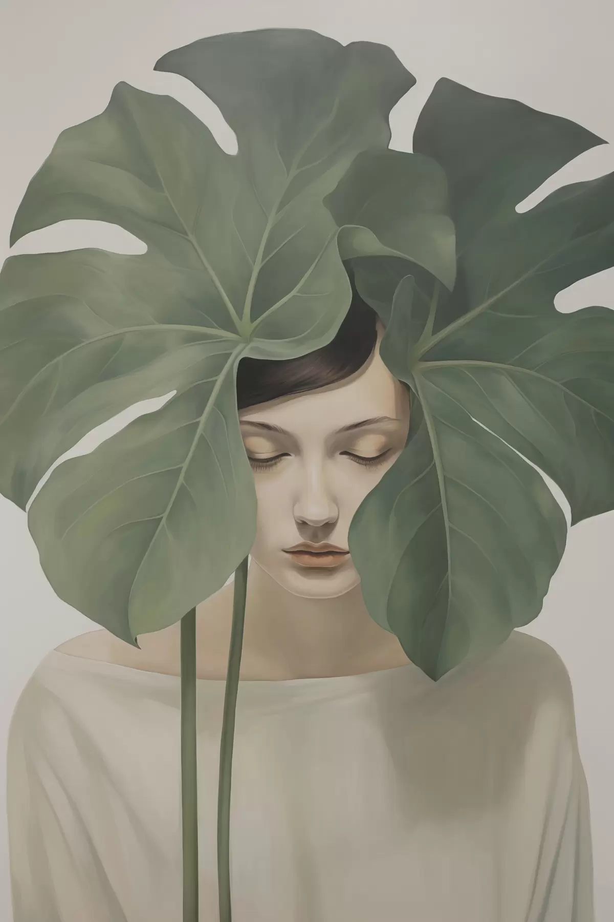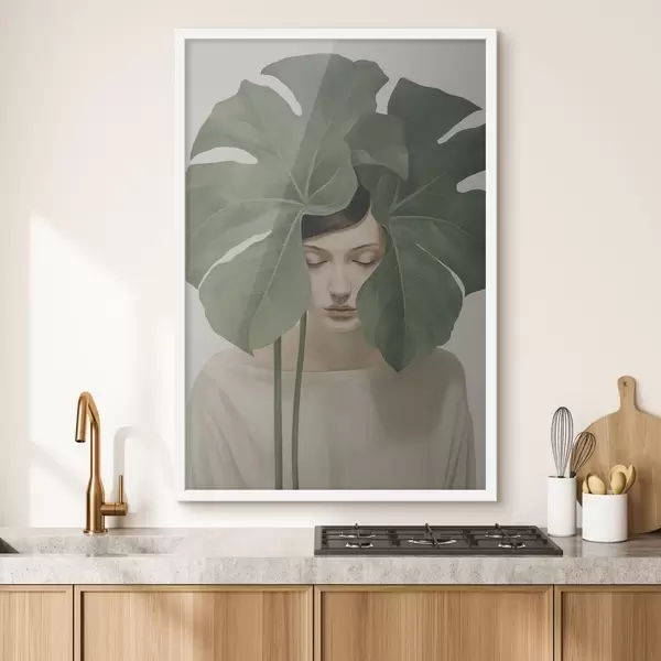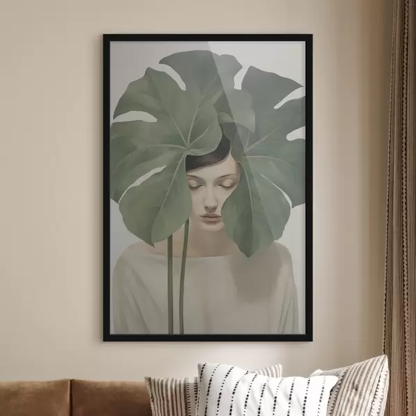 Poster Mädchen mit tropischen Blättern Nr f47335