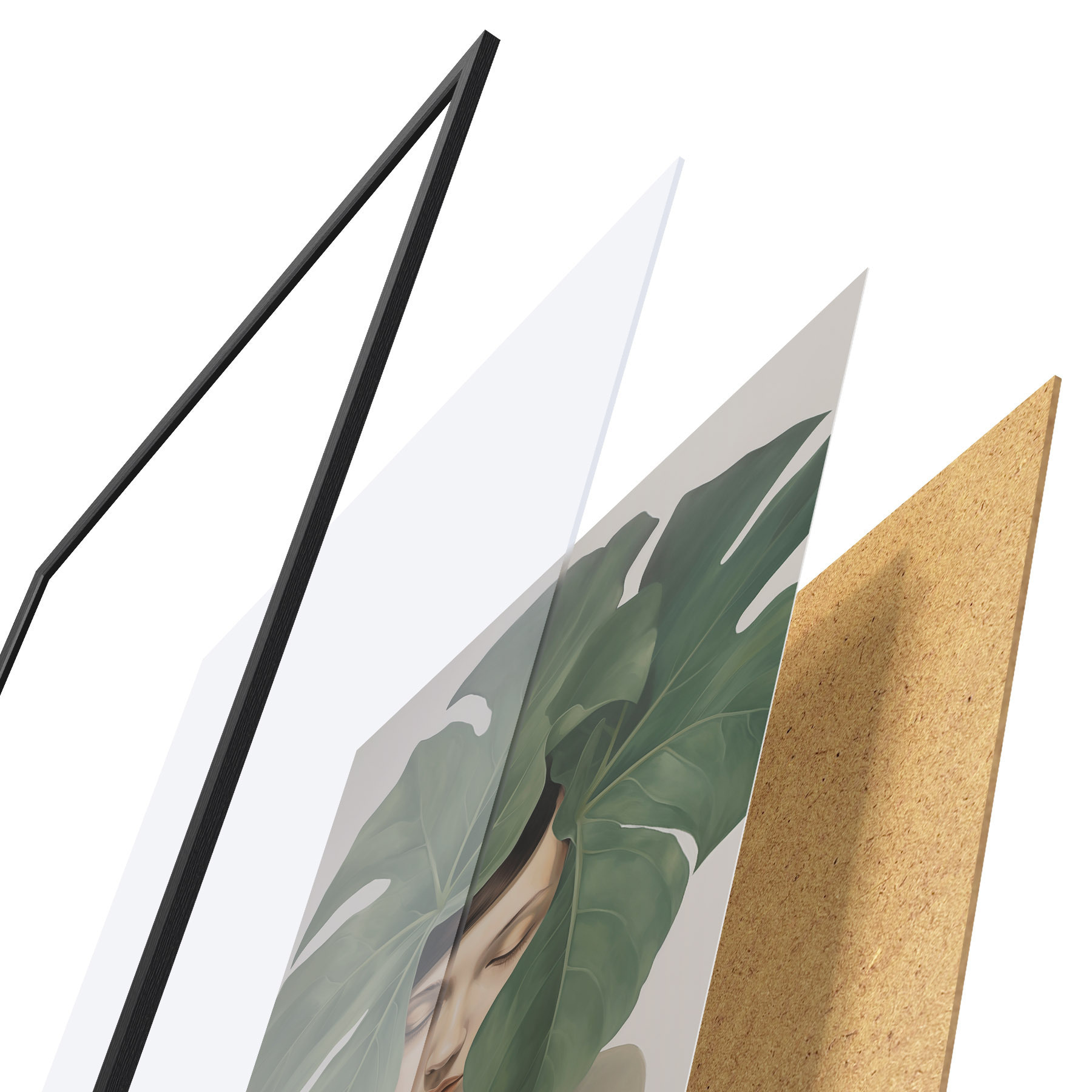 Das Poster besteht aus einem Rahmen, Plexiglas, einem gedruckten Bild und einer Rückwand aus Spanplatten. Dank der Halterungen auf der Rückseite kann das Poster sofort an die Wand gehängt werden.
