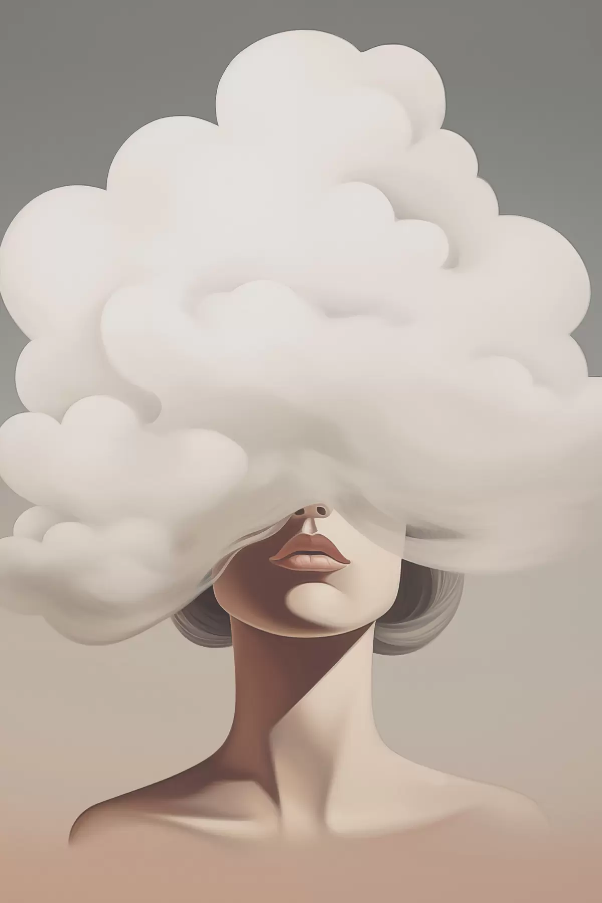 Poster Das Gesicht des Mädchens ist von einer Wolke verdeckt. f47337