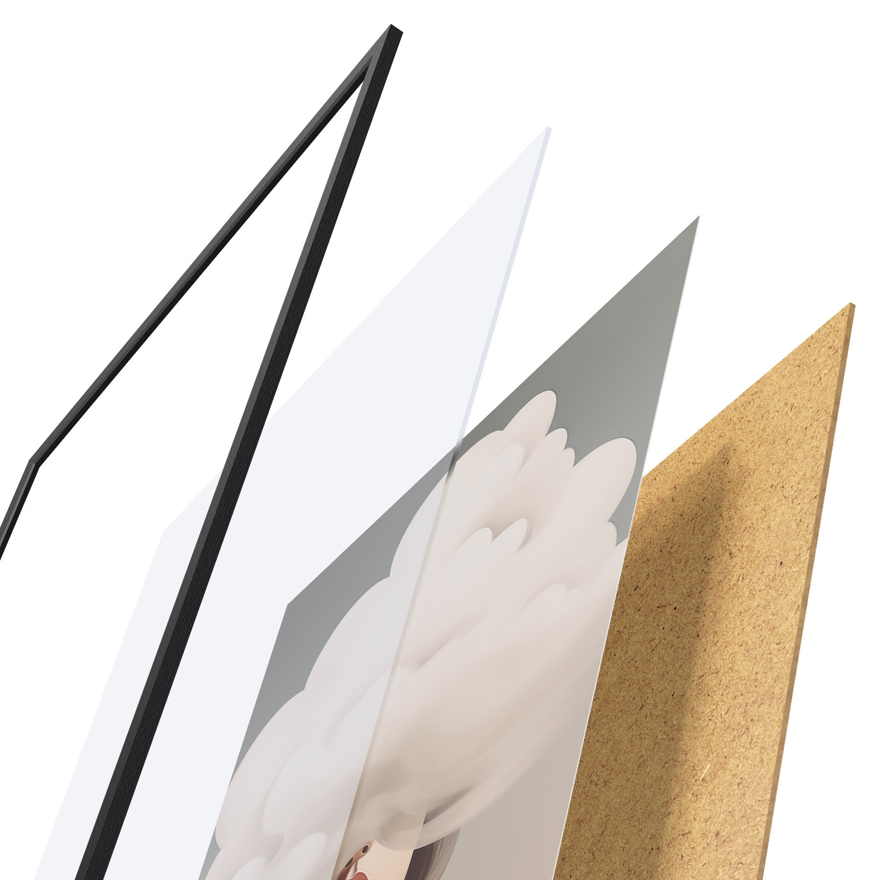 Das Poster besteht aus einem Rahmen, Plexiglas, einem gedruckten Bild und einer Rückwand aus Spanplatten. Dank der Halterungen auf der Rückseite kann das Poster sofort an die Wand gehängt werden.