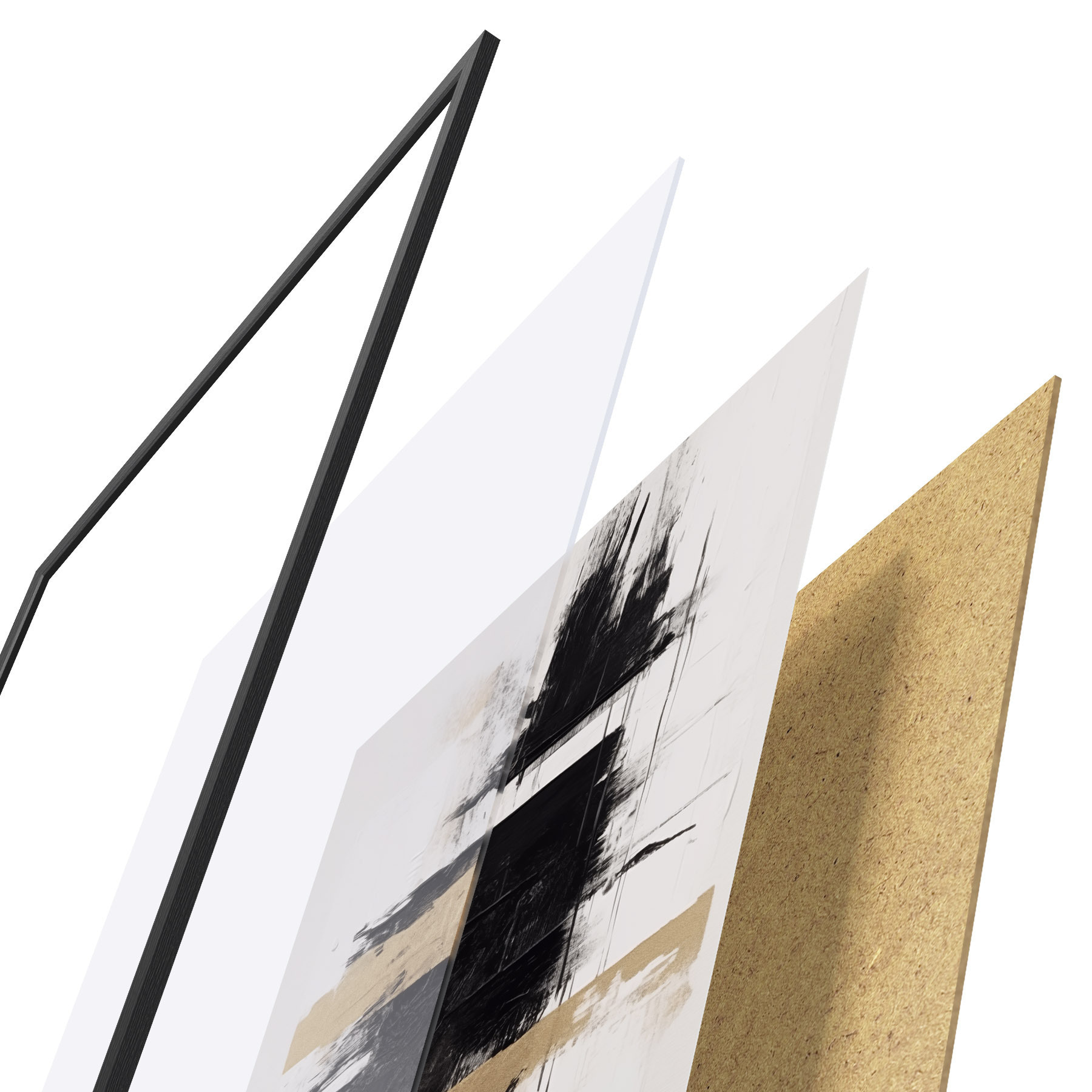 Das Poster besteht aus einem Rahmen, Plexiglas, einem gedruckten Bild und einer Rückwand aus Spanplatten. Dank der Halterungen auf der Rückseite kann das Poster sofort an die Wand gehängt werden.