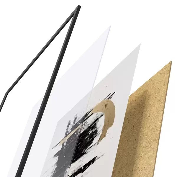 Das Poster besteht aus einem Rahmen, Plexiglas, einem gedruckten Bild und einer Rückwand aus Spanplatten. Dank der Halterungen auf der Rückseite kann das Poster sofort an die Wand gehängt werden.