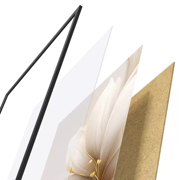 Das Poster besteht aus einem Rahmen, Plexiglas, einem gedruckten Bild und einer Rückwand aus Spanplatten. Dank der Halterungen auf der Rückseite kann das Poster sofort an die Wand gehängt werden.