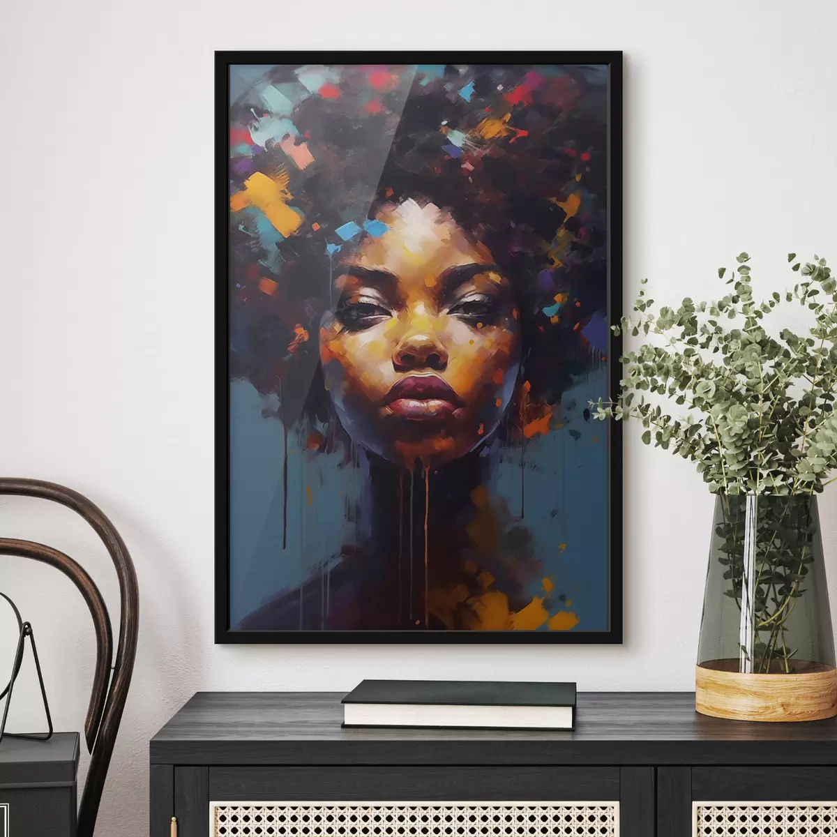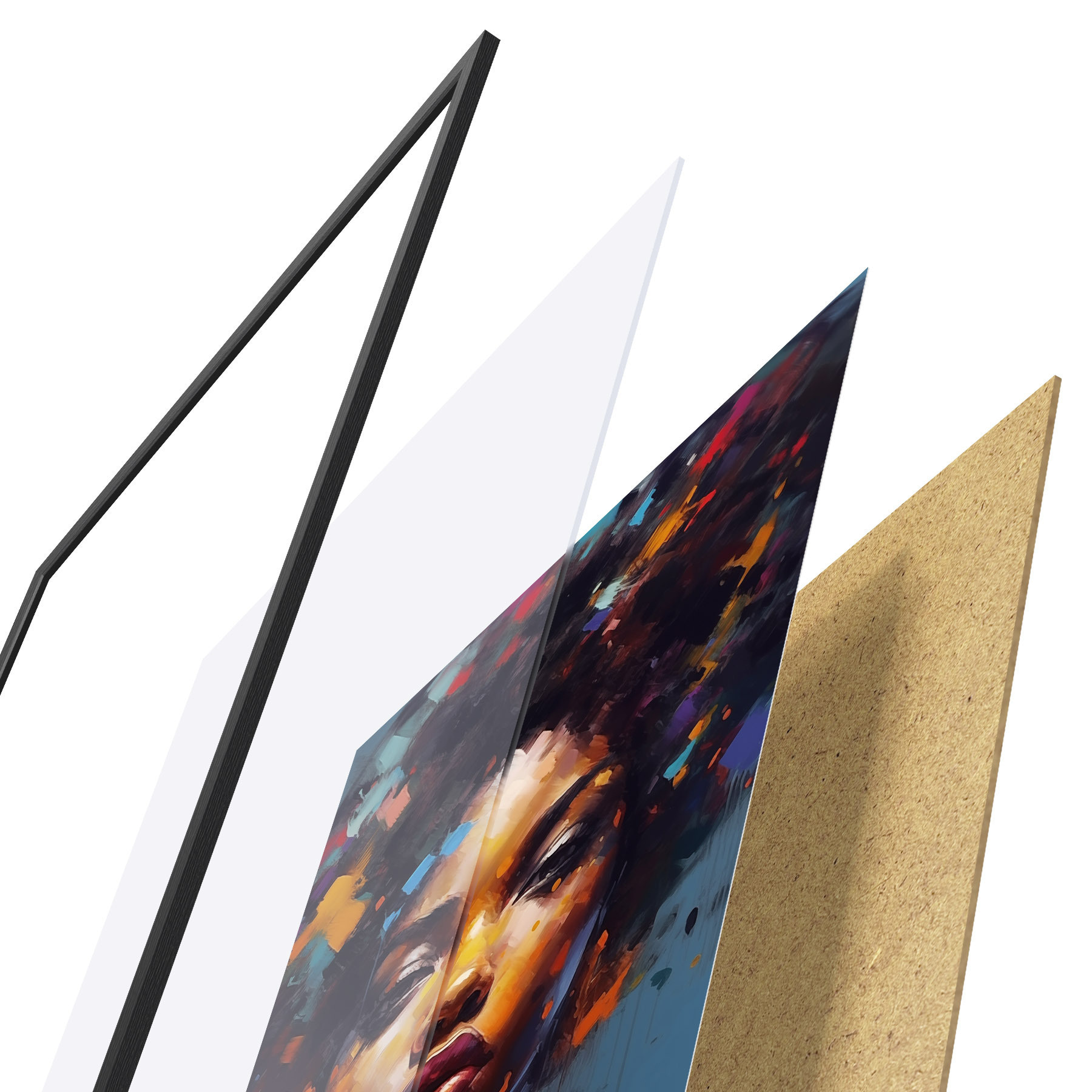 Das Poster besteht aus einem Rahmen, Plexiglas, einem gedruckten Bild und einer Rückwand aus Spanplatten. Dank der Halterungen auf der Rückseite kann das Poster sofort an die Wand gehängt werden.
