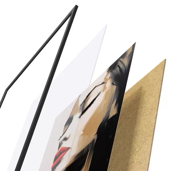 Das Poster besteht aus einem Rahmen, Plexiglas, einem gedruckten Bild und einer Rückwand aus Spanplatten. Dank der Halterungen auf der Rückseite kann das Poster sofort an die Wand gehängt werden.