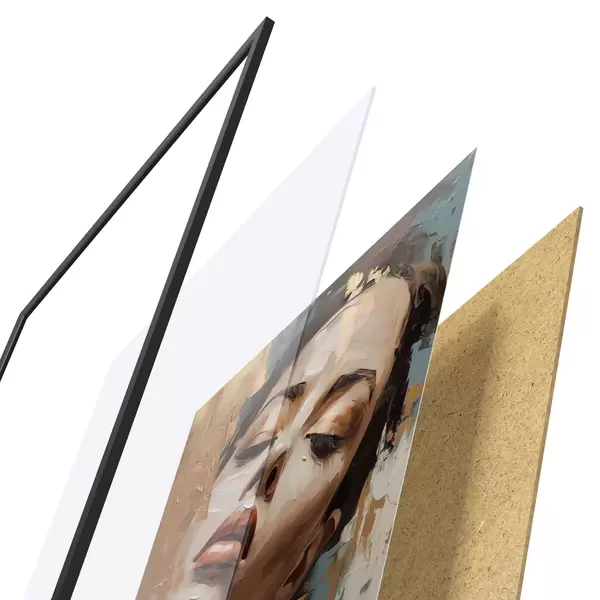 Das Poster besteht aus einem Rahmen, Plexiglas, einem gedruckten Bild und einer Rückwand aus Spanplatten. Dank der Halterungen auf der Rückseite kann das Poster sofort an die Wand gehängt werden.
