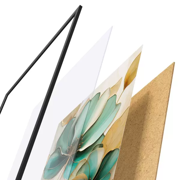 Das Poster besteht aus einem Rahmen, Plexiglas, einem gedruckten Bild und einer Rückwand aus Spanplatten. Dank der Halterungen auf der Rückseite kann das Poster sofort an die Wand gehängt werden.