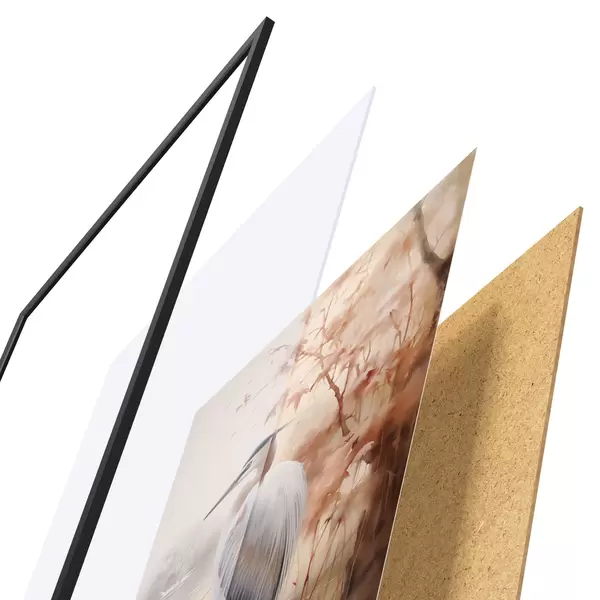 Das Poster besteht aus einem Rahmen, Plexiglas, einem gedruckten Bild und einer Rückwand aus Spanplatten. Dank der Halterungen auf der Rückseite kann das Poster sofort an die Wand gehängt werden.