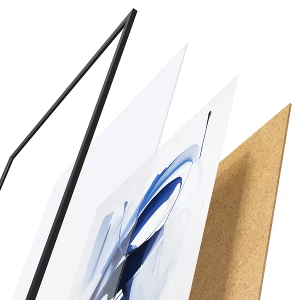 Das Poster besteht aus einem Rahmen, Plexiglas, einem gedruckten Bild und einer Rückwand aus Spanplatten. Dank der Halterungen auf der Rückseite kann das Poster sofort an die Wand gehängt werden.