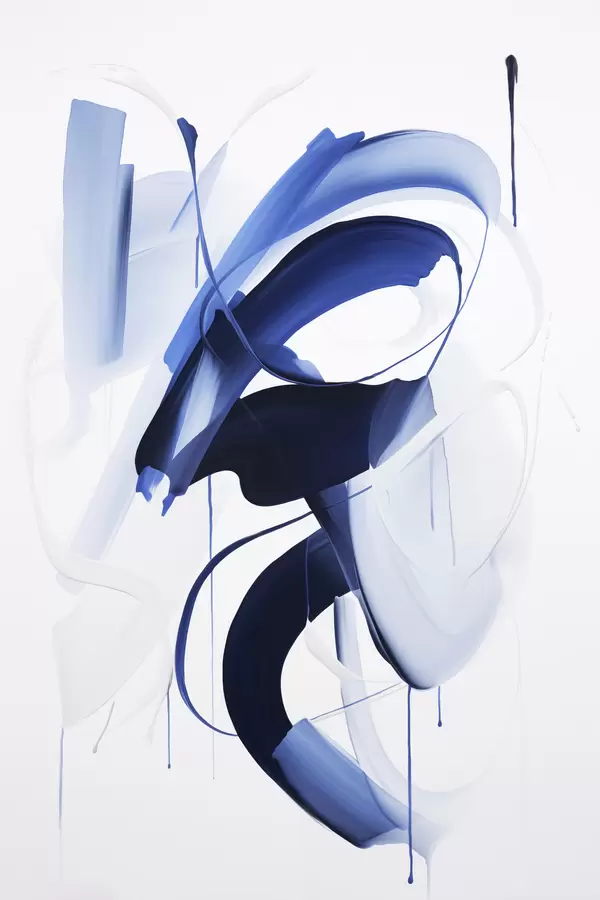 Poster Abstrakte blaue, pinselstrichartige Formen mit fließenden Linien und Kurven vor weißem Hintergrund, moderne Kunst Nr f47428