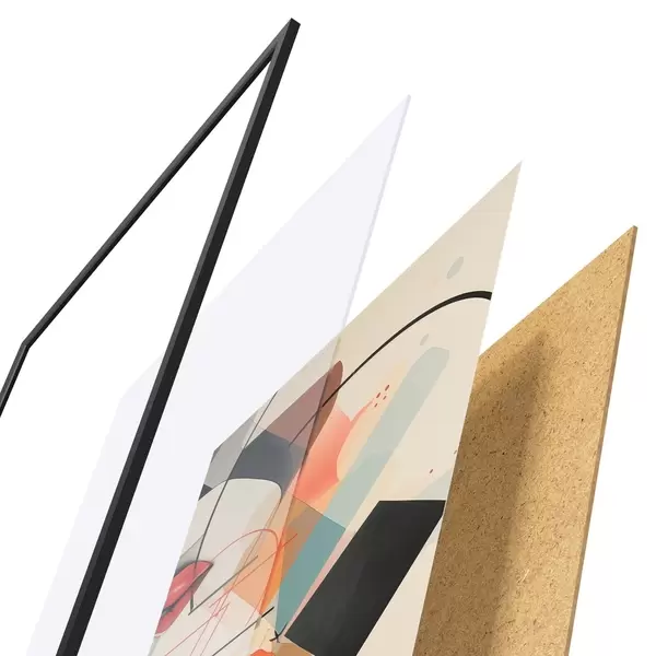 Das Poster besteht aus einem Rahmen, Plexiglas, einem gedruckten Bild und einer Rückwand aus Spanplatten. Dank der Halterungen auf der Rückseite kann das Poster sofort an die Wand gehängt werden.