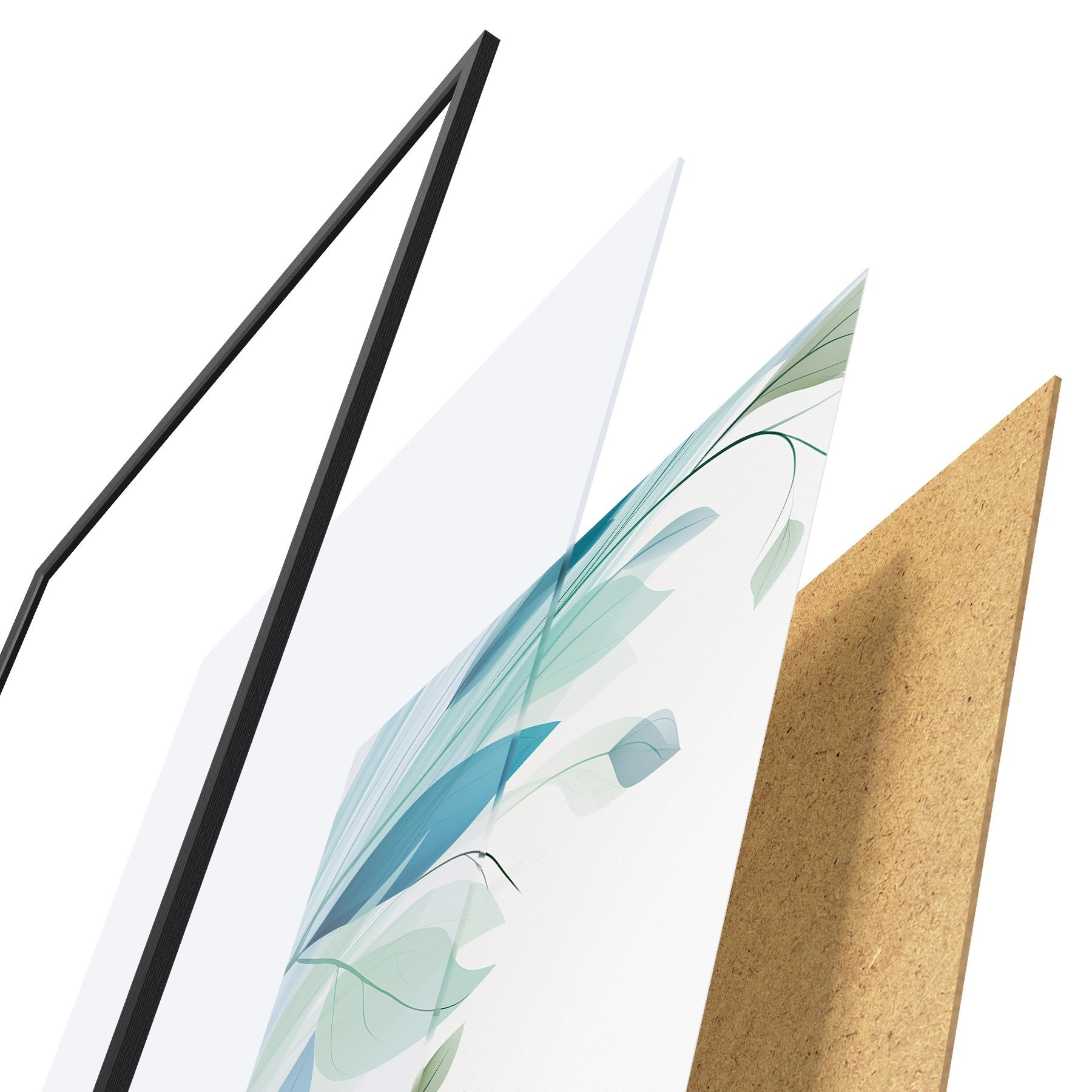 Das Poster besteht aus einem Rahmen, Plexiglas, einem gedruckten Bild und einer Rückwand aus Spanplatten. Dank der Halterungen auf der Rückseite kann das Poster sofort an die Wand gehängt werden.