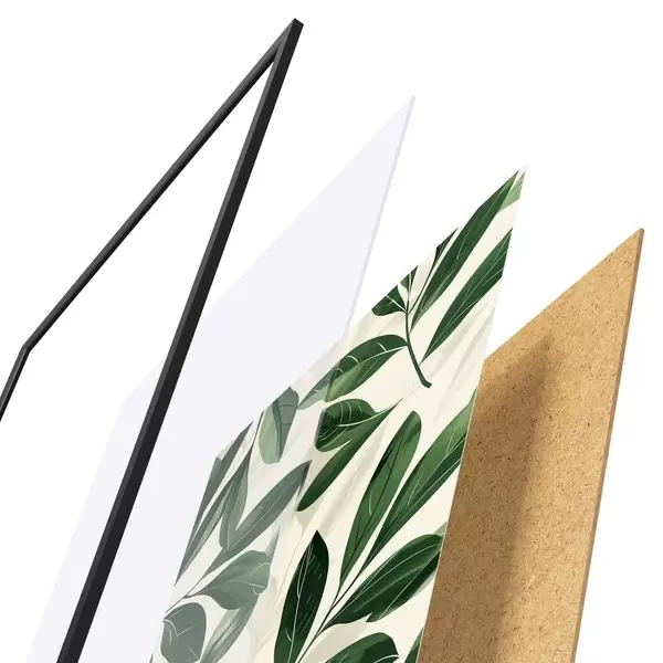 Das Poster besteht aus einem Rahmen, Plexiglas, einem gedruckten Bild und einer Rückwand aus Spanplatten. Dank der Halterungen auf der Rückseite kann das Poster sofort an die Wand gehängt werden.