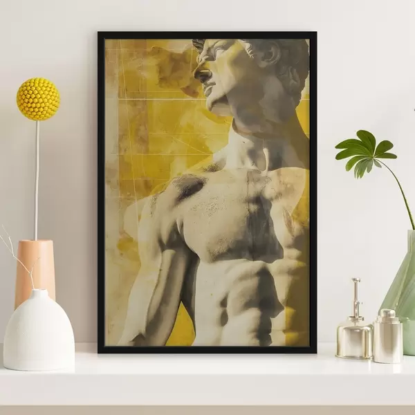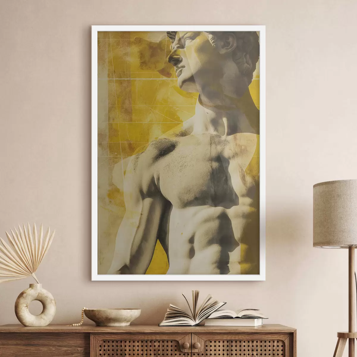 Das Poster besteht aus einem Rahmen, Plexiglas, einem gedruckten Bild und einer Rückwand aus Spanplatten. Dank der Halterungen auf der Rückseite kann das Poster sofort an die Wand gehängt werden.