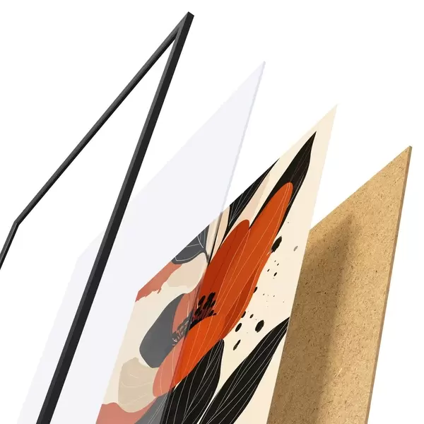 Das Poster besteht aus einem Rahmen, Plexiglas, einem gedruckten Bild und einer Rückwand aus Spanplatten. Dank der Halterungen auf der Rückseite kann das Poster sofort an die Wand gehängt werden.