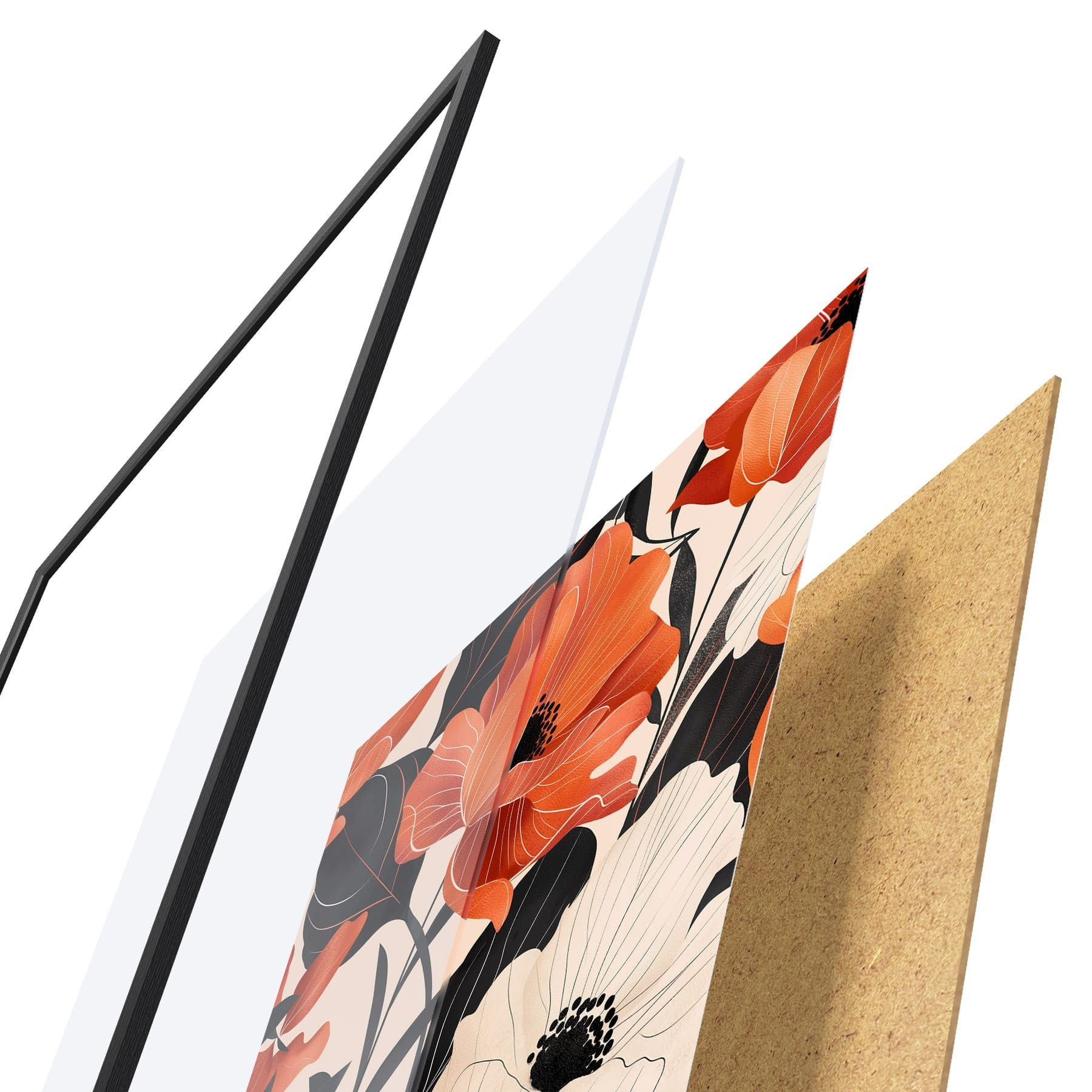Das Poster besteht aus einem Rahmen, Plexiglas, einem gedruckten Bild und einer Rückwand aus Spanplatten. Dank der Halterungen auf der Rückseite kann das Poster sofort an die Wand gehängt werden.
