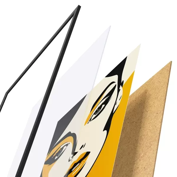 Das Poster besteht aus einem Rahmen, Plexiglas, einem gedruckten Bild und einer Rückwand aus Spanplatten. Dank der Halterungen auf der Rückseite kann das Poster sofort an die Wand gehängt werden.