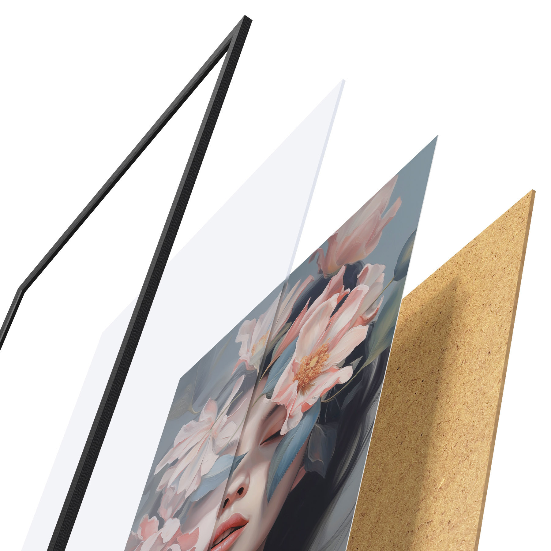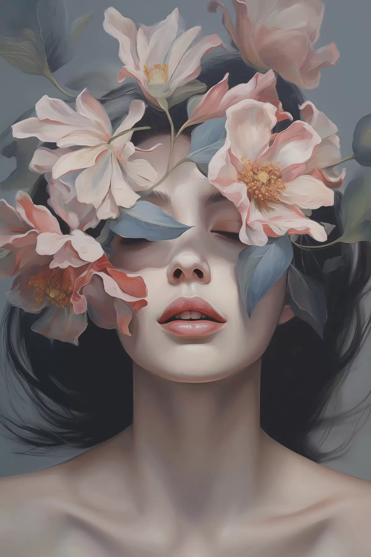 Poster Abstraktes Frauenporträt mit Blumen Nr f47488