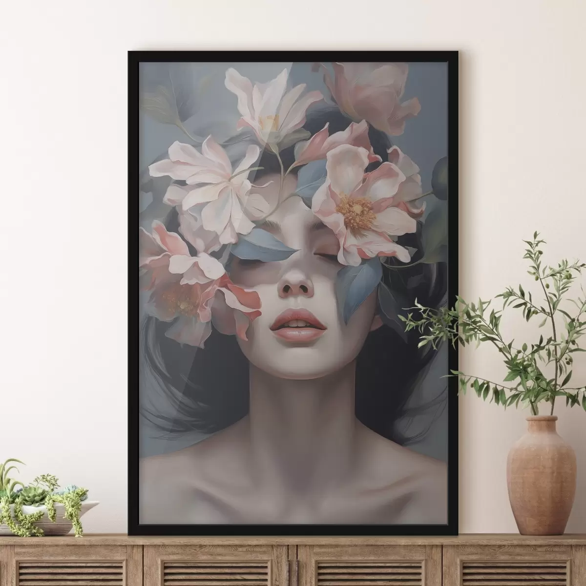 Poster Abstraktes Frauenporträt mit Blumen f47488