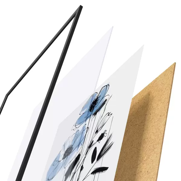 Das Poster besteht aus einem Rahmen, Plexiglas, einem gedruckten Bild und einer Rückwand aus Spanplatten. Dank der Halterungen auf der Rückseite kann das Poster sofort an die Wand gehängt werden.