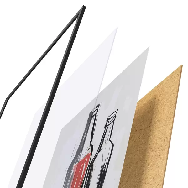Das Poster besteht aus einem Rahmen, Plexiglas, einem gedruckten Bild und einer Rückwand aus Spanplatten. Dank der Halterungen auf der Rückseite kann das Poster sofort an die Wand gehängt werden.